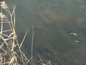 【8/100回目】 なんとか、釣りに出掛ける事に違和感を感じなくなってきた今日この頃。 しかし・・・w この感覚は、身近に釣りをする人がいたり、昔から釣りの経験豊富な人には判らんかもですね・・・。 ロッドを持って歩いてるだけで、「この格好、釣りする人から見ると異様かも知れん・・・」とか、 「なんでこの場所で、そのロッド?リール?」とか、思われてるかも知れない不安で一杯なんですw 「気にしすぎ!」と言われる方も多いでしょうが、それでも、実際には、 池に、サビキセット持って来たり、河口でヘラセット持ってたら異様ですよね? そういうレベルの人間の話なのです。はい。 ところで。 どこか異様な点はあるんでしょうが、気にならなくなって来た、という話の続きです。 始めた当初、バスの存在を確認できた事が何回かありましたが、気が付けば12月。 この間、何度となく、出かけてきたのですが、バスの”バ”の字も見当たりません。 他の魚はかなり見ますけど。
