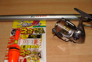 【11/100回目】 昨年の夏〜秋に掛けて、何度か河に出ましたが何も釣れず、やがて秋から冬へ。 基礎知識が無いので、何も考えず「冬はオフシーズン」だと勝手に決めていましたが、後から「冬は冬の釣りがある」という、割と当たり前のことなどを知りました^^; さて、そんなことなど全く知らないまま、春となりました。今年(2010年)の春の寒いこと! 4月から早速釣りしようと思ってたら、雪が降ったりで、本当に寒い春でした。 今年は海釣りデビュー!と何年も叫びつつ、全く実行できずにいるので、なんと、今年は春の一発目を海釣りデビューにすることに決めていました。 この季節に何が釣れるのか全く判らないのですが、とりあえず、一度、釣り場を下見に。。 すると家族連れなど沢山の人が、サビキっぽい釣りを楽しんでるようで(釣れてる気配はないものの^^;)、早速、釣具屋さんで、かねてより調べに調べてた道具一式を購入。