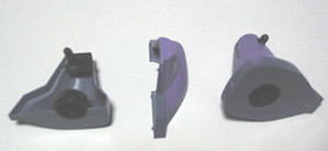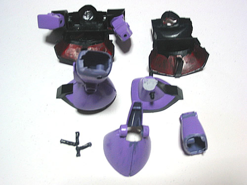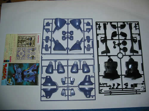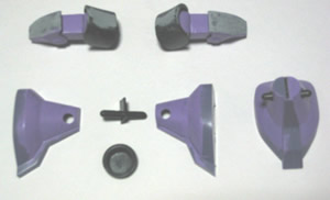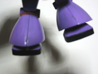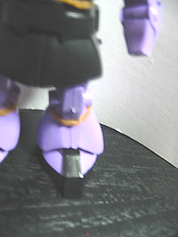 う〜ん・・・謎のパーツ割(笑 ↑の足首パーツですが、黒い棒状のモノ(間接部分)が別パーツになってます。これは組む段階で結局接着固定されるのですが・・・?ちなみに丸いヤツは足の裏のバーニアです。何度も頭をひねりましたが・・・ナゼ別パーツになってるのかが理解できない上に、デメリットばかり思いつく次第です。ま、そういうものである!と無理矢理消化しましょう!(笑