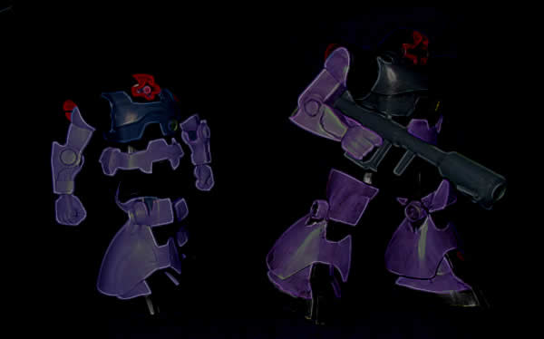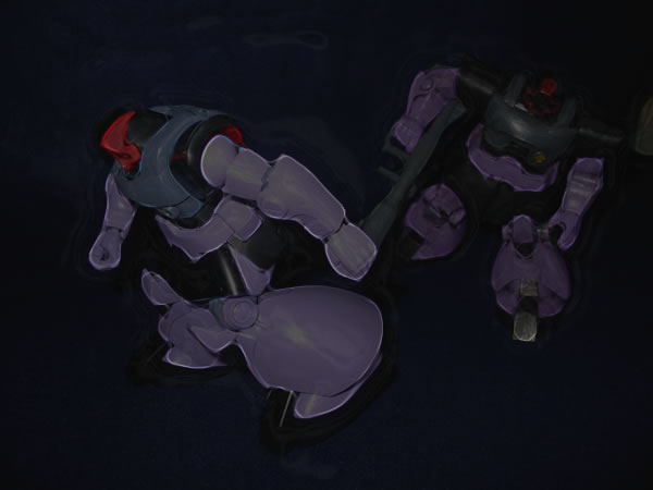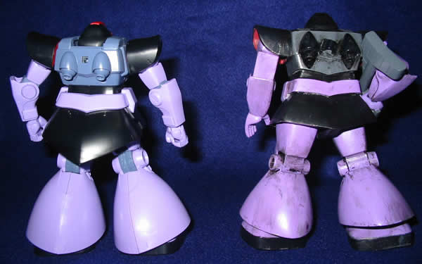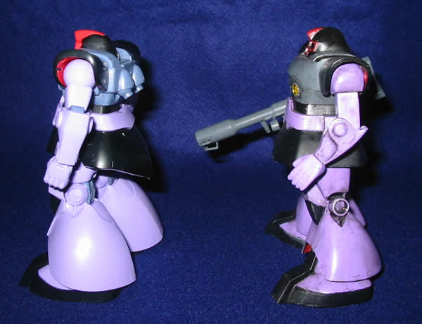 [補足] しかしまぁ、私もよくよく横着な人間でして、今回も武器無し(笑 ヒート・サーベルかジャイアントバズーカは必須かとは思える訳ですが、面倒なので、後日へ。 しかししかし! こうやって並べて見ると、やはり旧キットは侮れない名作だと、改めて感動しきりです!! 本当にグフとドムに関しては、心から拍手を送りたい一品です。 (但し、つくり手が私のような下手糞だと、そんな名作も、単なるプラスチック廃材と化す訳です・・・orz)