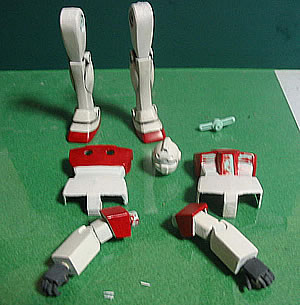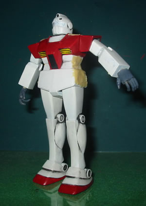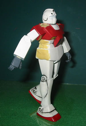 とりあえず、胴体部分の塗装をガンガリマツ。 正直、「どこまでが赤色なのか?」や「どこまでが黄色?」、「どこまでが白色?」、「黒は?」などの疑問が出てきまして、こういうのが、「迷い」であり、云々だそうです。 さて、ここまで来れば、こっからは余程の幸運でもないと、後からの塗装修正が不可能っぽいもんで。 で、できたら、おもむろに胴体部分を接着! (当然ながら他のパーツ達も・・・) 胴体部分の目立つ合わせ目にパテ攻撃!!