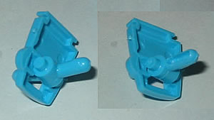 ガンプラ名物! 股関節十字パーツですが、前後非対称であるにも関わらず、左図の通り、どっちにでも適用可(笑 たぶん、普通は左図の左側が正しいのでしょうが、今回、私は敢えて、右側のパターンを適用することにします。