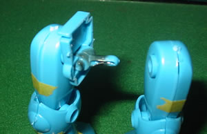 手ですが、一体何故に、このような分割ラインが考案され、また採用されたのでしょうか? これだと親指が不自然に分割されています。 ・・・あ!そうか! ギャンは剣と盾がトレードマークなので、手に持たせても、充分耐えられるように考え抜かれた設計なんだ! ・・・いや、それだったら小指側も同じように配慮して欲しいのですが無視ですかそうですか・・・orz