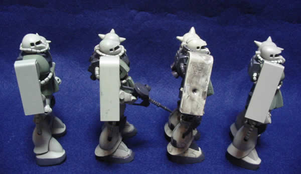 ザクマシンガンとミサイルポッドを作ってないのですが、前に試みた通りの、ザクのお約束の姿勢が可能です。 思えばランバ・ラル隊のザク達が、一番輝いていたように思います。(以下、ククルス・ドアン禁止・・・w)
