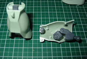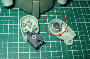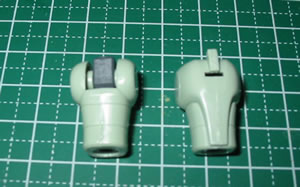 続いて、フクラハギというかスネの部分と足首へ。 この足首の関節も初めて目にするパターンで、組立図をちゃんと見ないと組めません(笑 "初めて目にする"と書きましたが、少しパターンが変化するものの、ドムやゲルググと共通する動きなので、これが基礎構造なのかも知れません。(いや、すみません、適当にそう思っただけですw)
