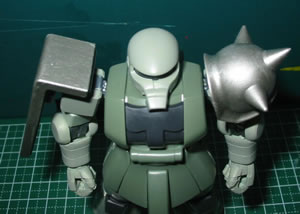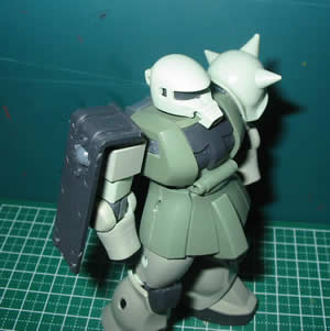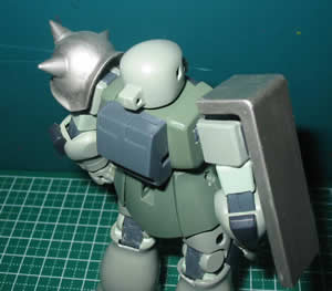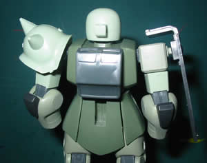 さて、そんなこんなで、殆ど努力せずとも、頭部の接着跡は全く判らなくなりました。 残す所は、両肩と手首、動力パイプですが、右肩のシールドは、写真の通り、裏表の2つのパーツからなります。 で、今は裏側にあたる部分だけ装着しているのですが、なんかこれが格好良いんです。