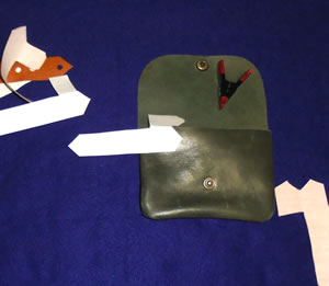 財布のどこにどんな穴を開ければ、本体にあまり被害を出さずに、目的を果たせるか?しばし研究。