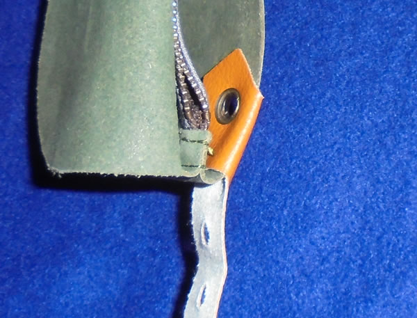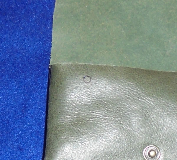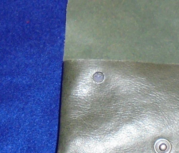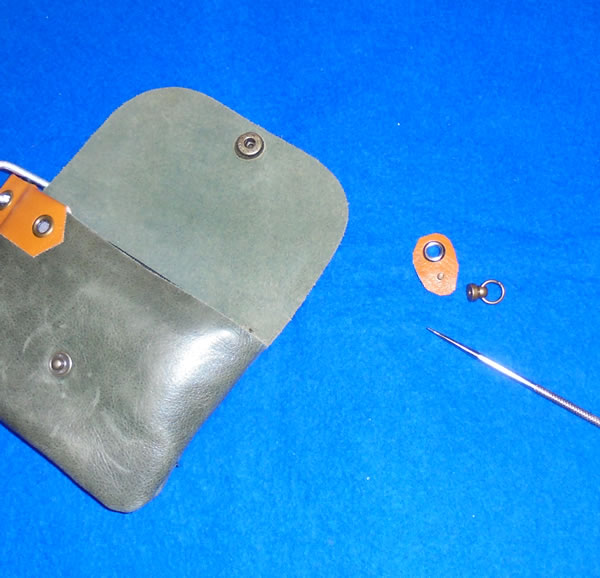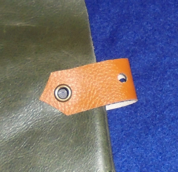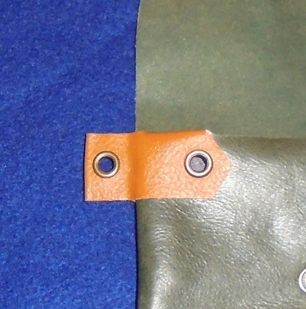 ハトメは、小銭入れのボタンと同じ、アンティークな色の物にしました。これは、ちゃんと裏側も美しいのです。