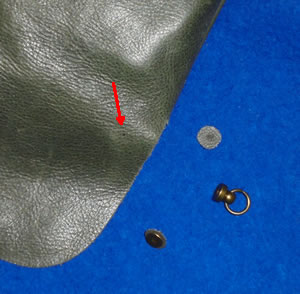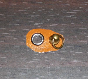 端切れに取付の練習をしたハトメ。その横に新しい金具を付けてみた。