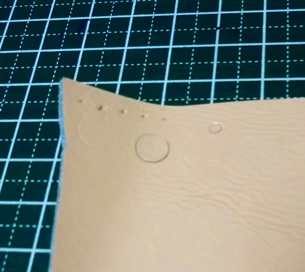100均の革とは言え、革は革ですね〜菱目打ちも素手ではダメでした・・・