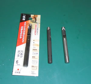 それと、近所のホームセンターで、ちょっとお高め(300円くらい)の革ポンチを購入。