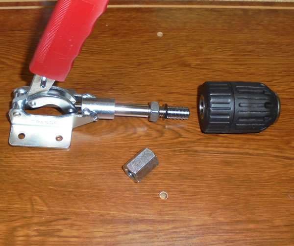 と言っても、トグルクランプとそれに取り付けるドリルチャック。そして、両者をジョイントする、ネジサイズの変換アダプターですね。