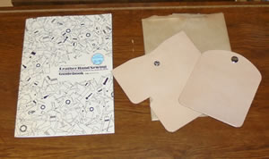 これは、型紙と作り方が解説された説明書、そして既に型紙通りに裁断された革がセットになった商品です。