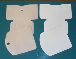 左がキットの裁断済み 右が初めて切ってみたヌメ革