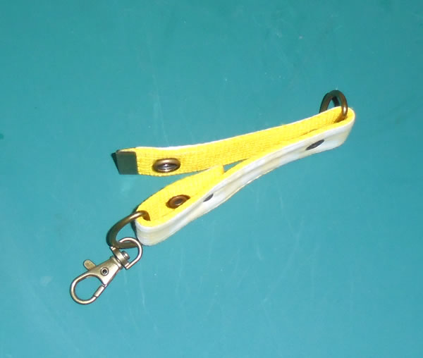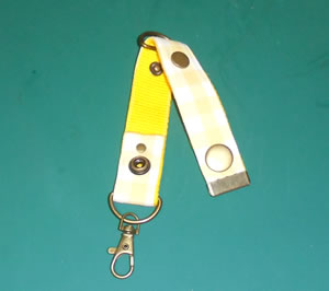 このキーホルダーですが、両側をホックにするのは予定通りだったのですが、上側はDカンを閉じ込める為にホックを使って、Dカンを外せる様にしています。