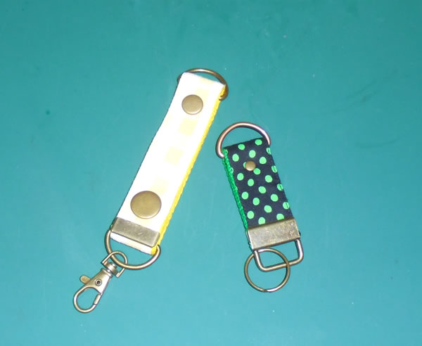 と、思ったのですが、実は、この革が到着するまでの間に、練習がてら、手元に残ってた、レザークラフト用の金具の取付方を知る為に、綾紐を使ったキーホルダーを幾つか作ってみたのです。