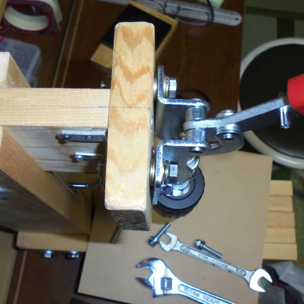 とりあえず、この応急処置で支柱の傾きはそのままに、トグルクランプは台座に対して垂直を取り戻せたので、
