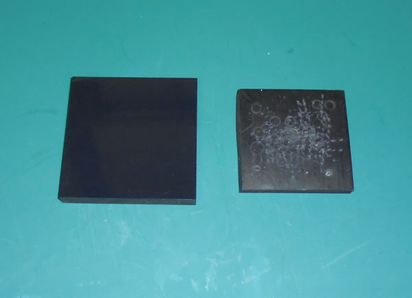 一方、新しいレザークラフト用のゴム板は、10cm四方ですが、両手でも簡単には曲げられないほど固いのです。
