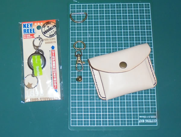 100均で適当にピンオンリールを買ってきましたが、コインパース側に施す細工は、以前にやった事を参考に、残ってた金具を取付けます。