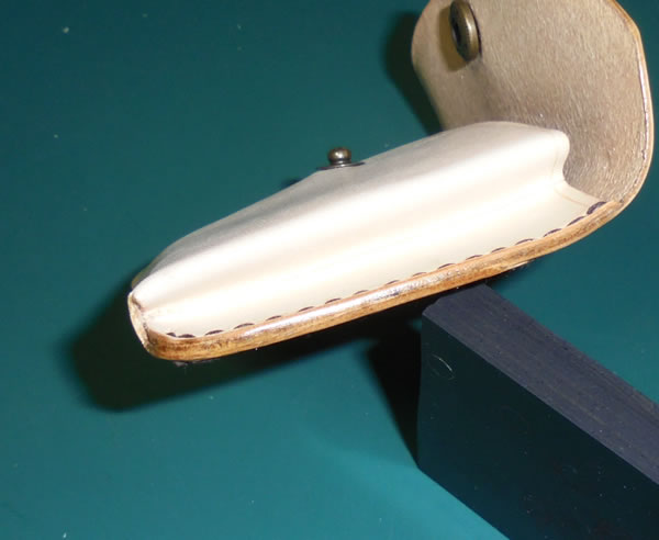 2枚重ねると、当然2mmになりますので、この厚みならバネホックは取付可能ですが、スケッチの通り、片側は折り返してDカンを閉じ込めたいのです。