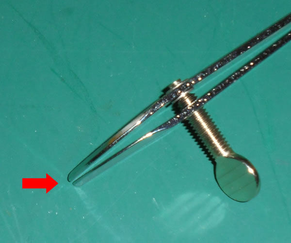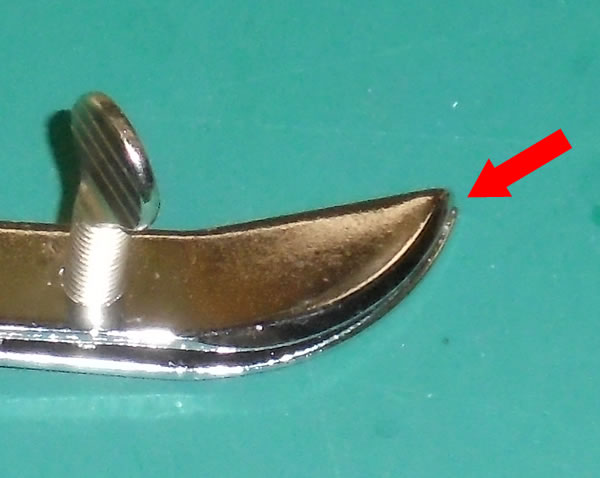 赤い矢印の部分、つまり先端の部分ですが、上側が少し出っ張ってます。つまり、実際に使用する際の左側です。
