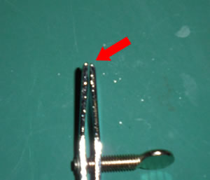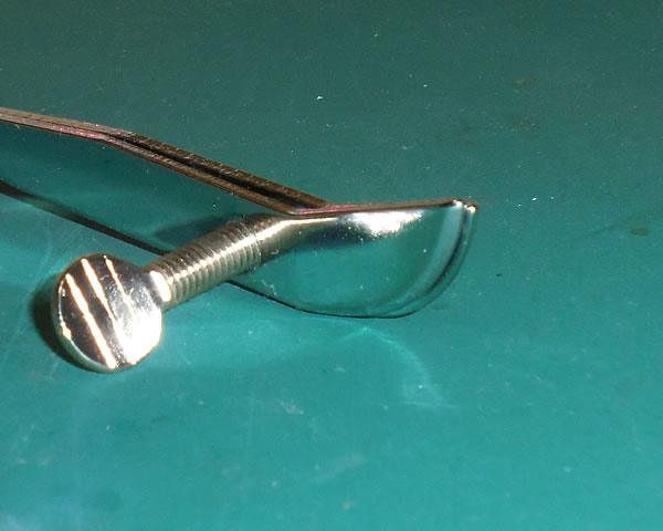 上の写真は、ネジ念を下から見てる状態です。見えてる面が革に接する部分です。