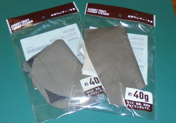 以前、ブログでも取り上げましたが、幾つかの100円均一ショップでも、革の端切れが手に入る事があります。