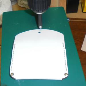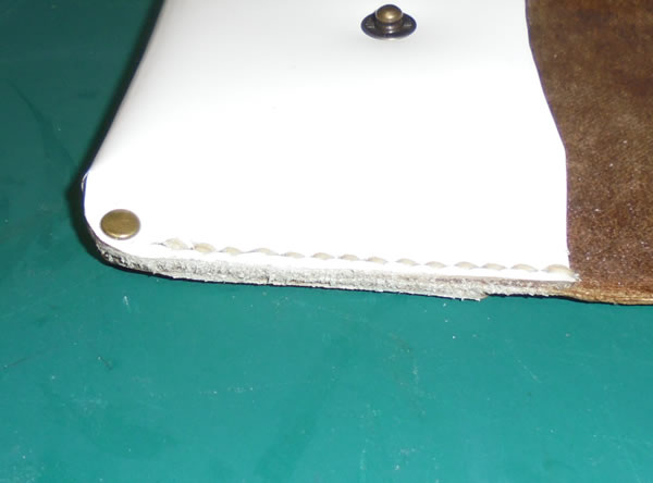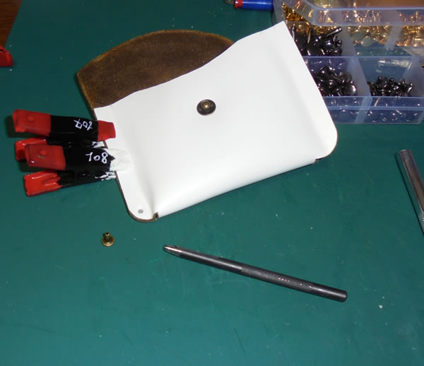 この辺りで、コバ磨きはそろそろ終了とし、バネホックのメスパーツを取付けていきます。