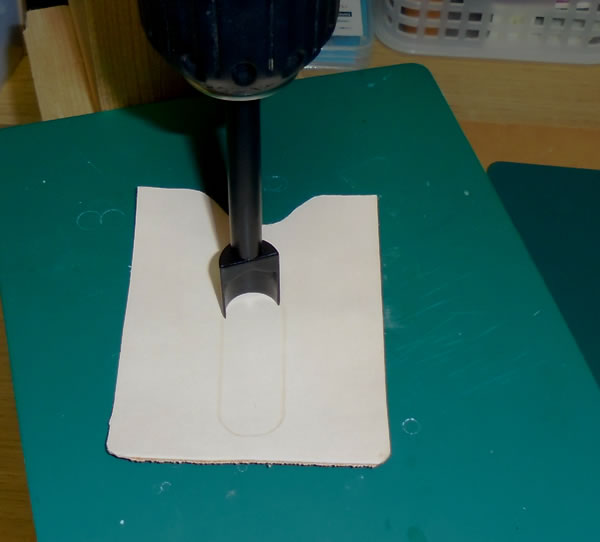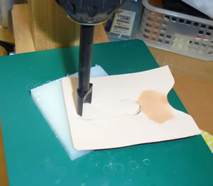 革ポンチの中心の印に合わせて、穴を開けていきます。