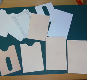 さて、まずは型紙の原紙をコピーして厚紙に貼り付けて切り出して型紙を作り、革に形を写していきます。