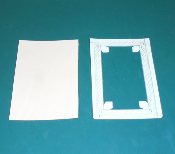 右側の型紙が変なデザインになってますが、どうしてこんな事になったかと言いますと、透明セルを取付ける為、中央部をくり抜いて窓を開けるのですが、その窓の四隅は丸くしたいのです。