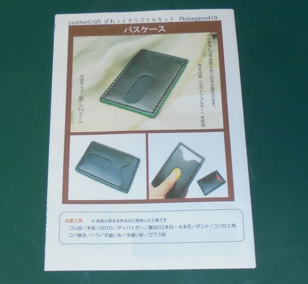 教材という観点から見ると、コインパースと違って、金具類の取付工程はありませんが、曲線の裁断や、複数枚の素材の貼り付け、美しい縫い目を作る、といった工程がありますので、今回はこれで勉強してみようと思います。