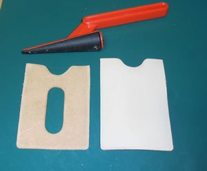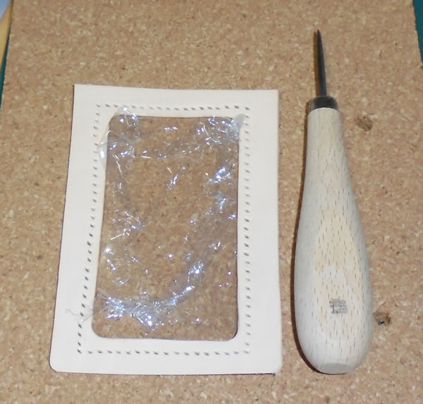 という訳で、菱目打ちを行う訳ですが、コレ、材質が全く異なる革と透明セロハン。菱目打ちが上手く貫通できるのでしょうか?