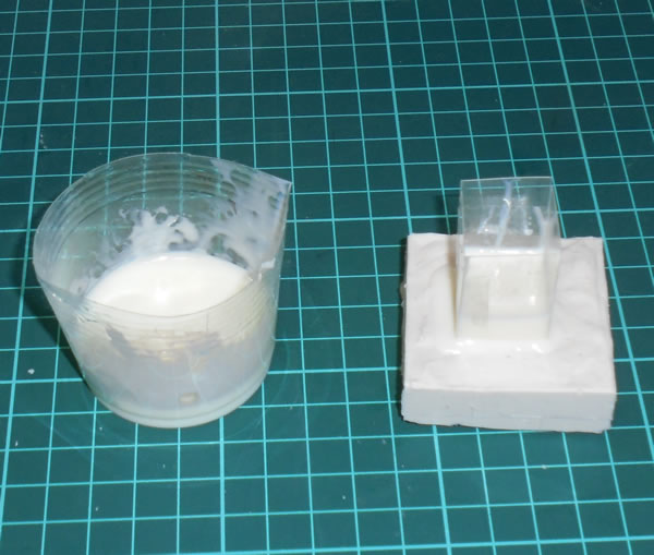 シリコン型の内面に、薄いプラ板で囲いを作って、そこにレジン液を流し込む、という新技ですw