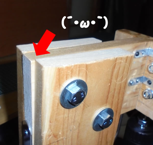 この背面の、板が3枚重なってる部分ですが、テコの原理による強い力を受けてしまい、真ん中の板が後ろに出っ張ってしまってたのでした。
