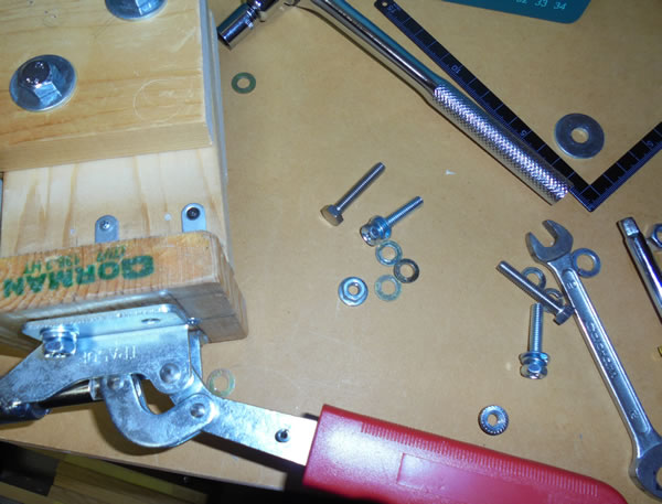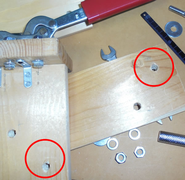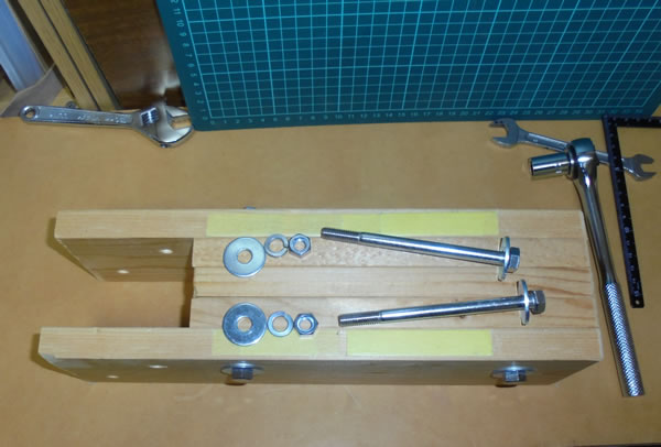 ボルトの太さと全く同じ口径の穴を開けて、そこにボルトをねじ込んで組み立てたので、遊びは全くありませんので、締める時も外す時も大変です。