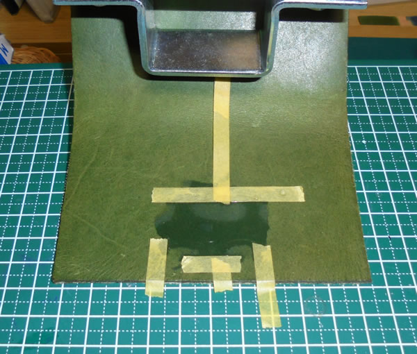 慎重に周囲からの長さを測り、マスキングテープで印を付けて、打刻する場所を確定します。