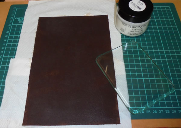 その直前に初めて作った作品の素材は、ヌメ革だったので、お手本通りに作ることが出来たのでしたが、ダイソーで買ったこの白い革は、全然違う性質だったのでした。