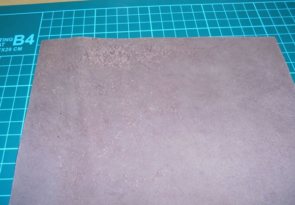例の白い革とはかなり違って、もっと革っぽさがありますし、床面やコバ面も革っぽいので、少し安心しました。
