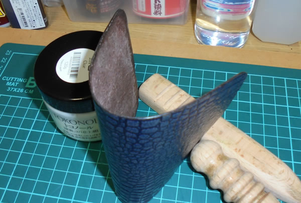 これはあくまで練習作品なので良いのですが、本番だともう少し分厚いヌメ革の方が良さそうですね。
