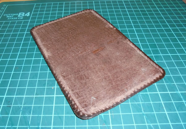 外装に使う、ワニ柄のパーツですが、モフモフになってた床面を適当に処理しましたが、コバ磨きは真面目に取り組みました。