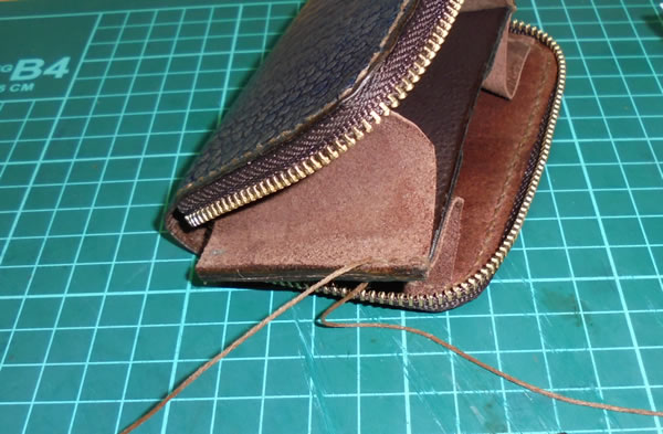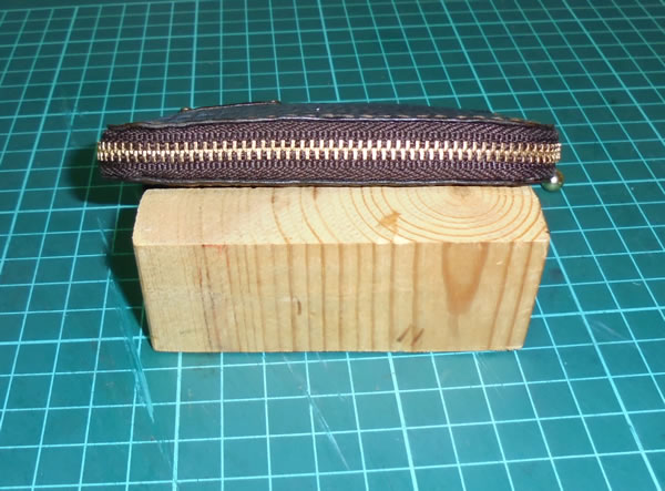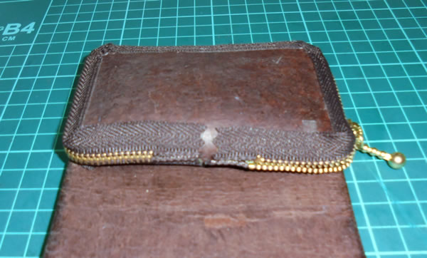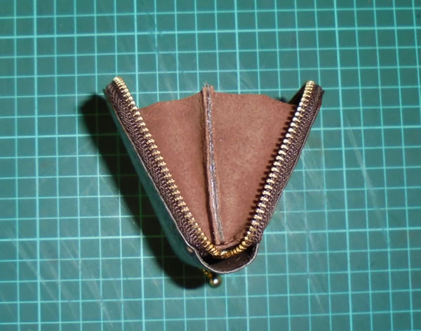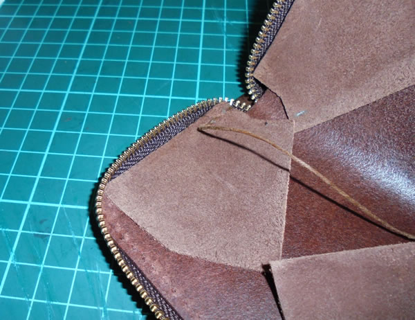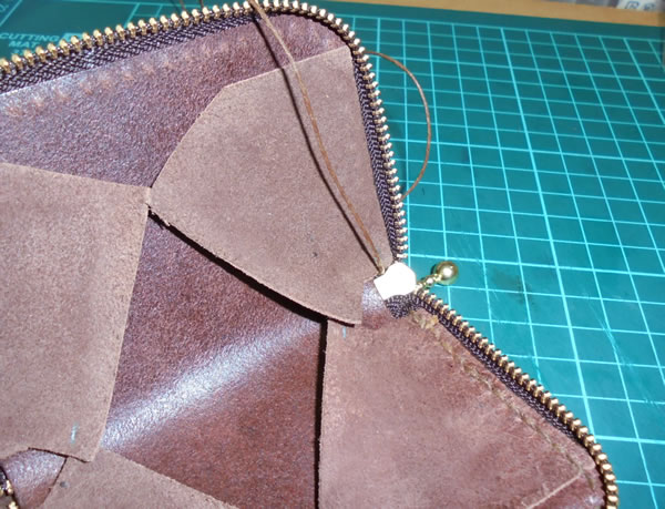 後でもう一度取り上げますが、やはり角の部分は重要なんですよね。10円玉を使って曲線を出した部分=ファスナーを取付ける時に菊寄せした部分です。