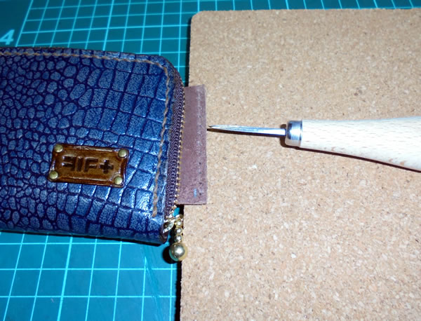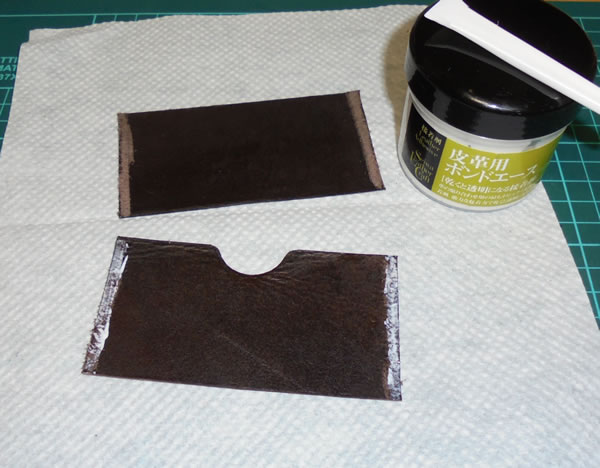 そう言えば、このポケットパーツも、結局は、スマホケースの時にも使った、ダイソーの焦げ茶色の革の残りを使うことにしました。シボ柄のやつですね。
