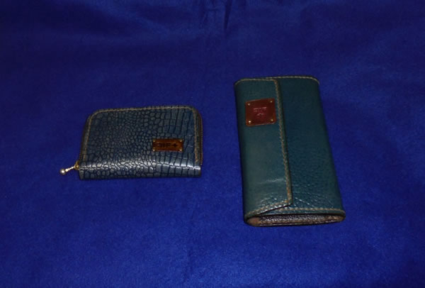 スマホケースの方は、色落ちは殆どしてませんが、濃紺→濃緑っぽく変化してますが、この変化はずっと続いてる様で、この写真から1カ月ほど経過した今は、更にもう少し緑っぽくなってます。