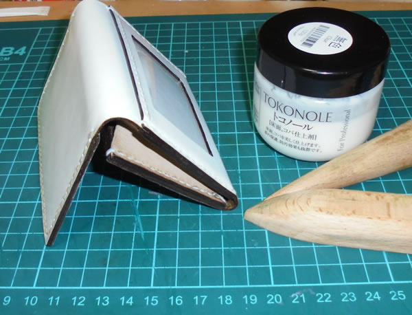もう今後は、このダイソーの謎の白い革を買うことは無いと思うのでアレですが、コバの処理方法の一つとして、理解しておく手法だと思うので、やってみて良かったです。