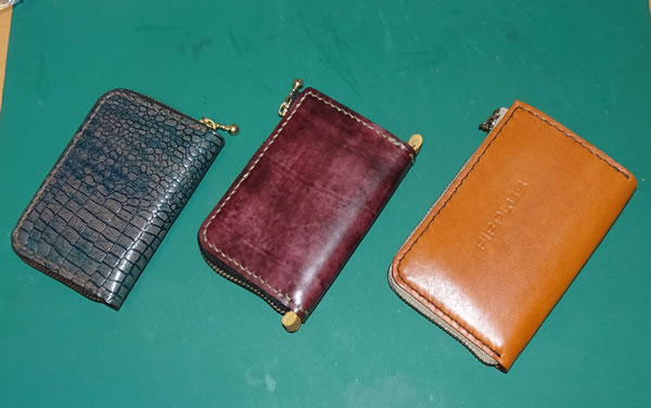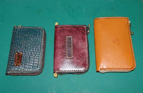 という訳で、ファスナー付きミニワレット、3作目なので、これまでの2作品と比較。