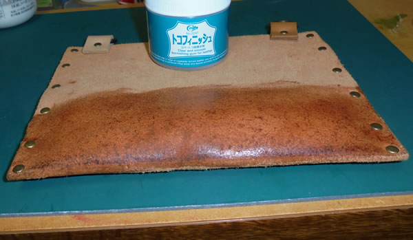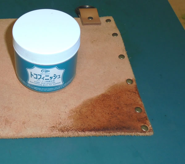 本来は床面に施す作業ですが、今回は床革なので、表面の毛羽立ちを抑える為に必須と思い、やってみることに。