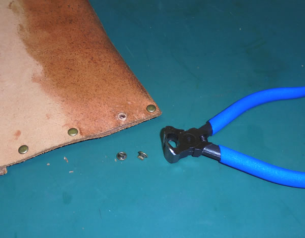 ついでに、カシメで固定されてるヒモ通しも外して、別のパーツを取り付けたいと思ってますので、このカシメ外し作業はどっちみち必要なのでした。