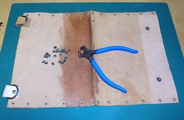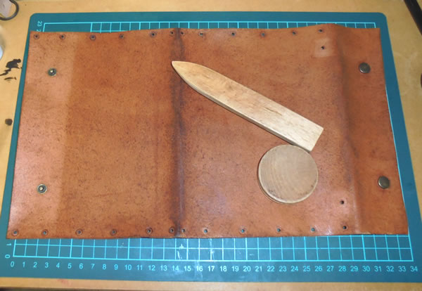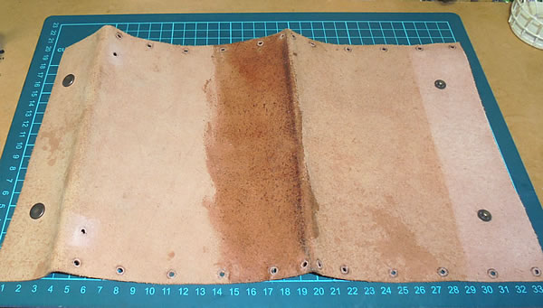 全てのカシメを取り外し、1枚の床革に戻った状態。