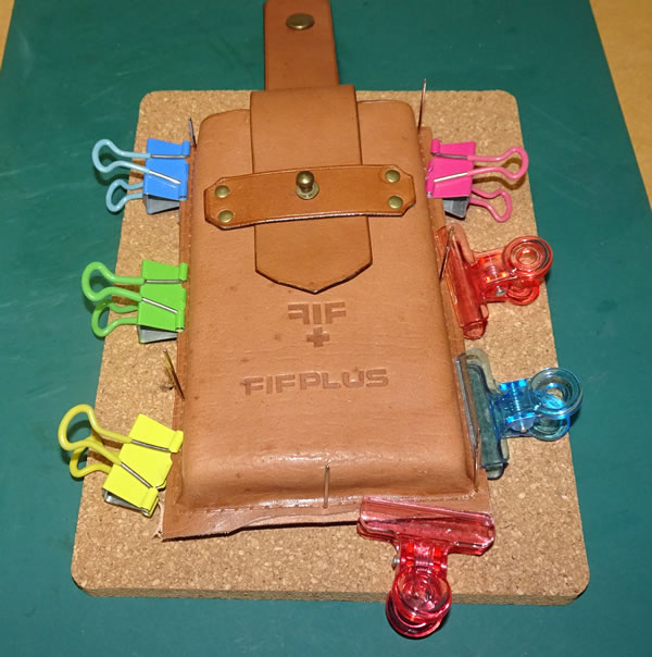 革が固い(・・・・何回も言うなっ!w)ので、反り返ってズレてしまわない様にクリップに加えて、何ヶ所かに針を貫通させておきました。